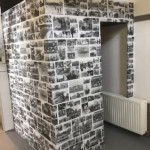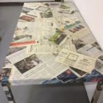 De grote museumzaal wordt atelier én standplaats van de redactie. Elke week strijkt hier iemand van de redactie een paar uur neer om bezoeker te woord te staan over de krant of over één van de thema’s van de tentoonstelling.