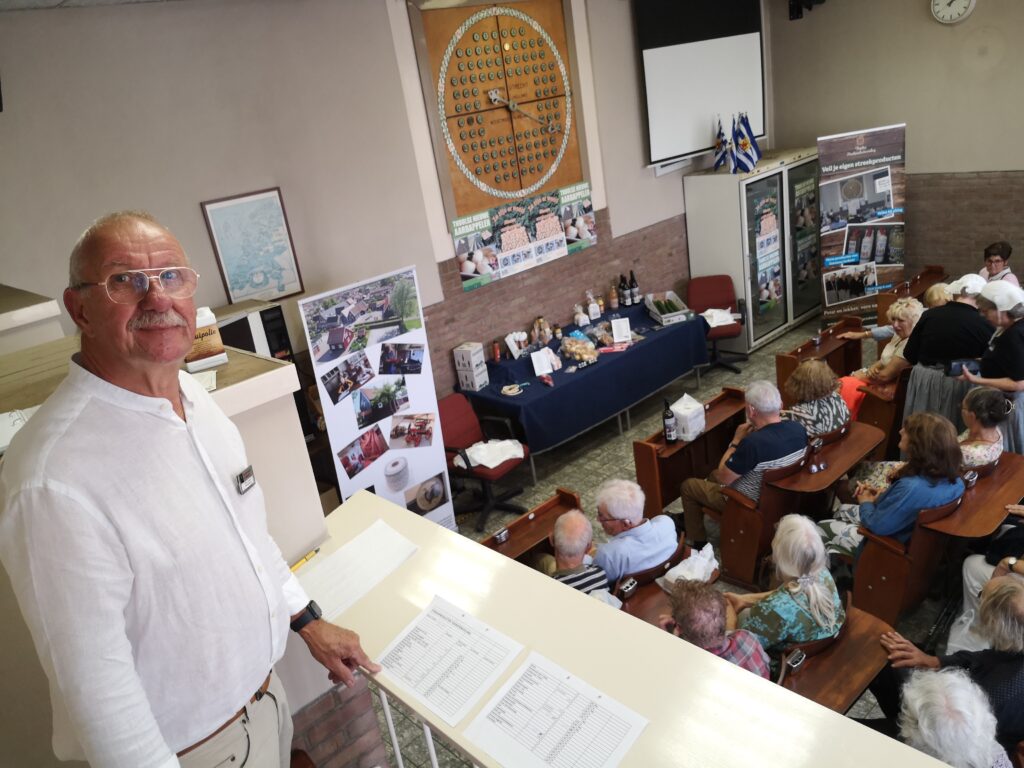 Het was woensdag 4 september de laatste streekveiling van het museumseizoen, maar ook een van de beste. Hoewel de tijd voor het bezoek bijna was verstreken kwamen er vanuit de mijnzaal nog steeds vragen naar producten. Vragen naar mosterd, advocaat, aardappelen, appels.